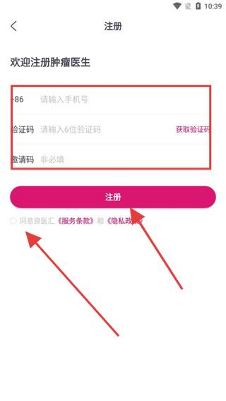 1、打開腫瘤醫(yī)生APP,先完成賬號注冊。