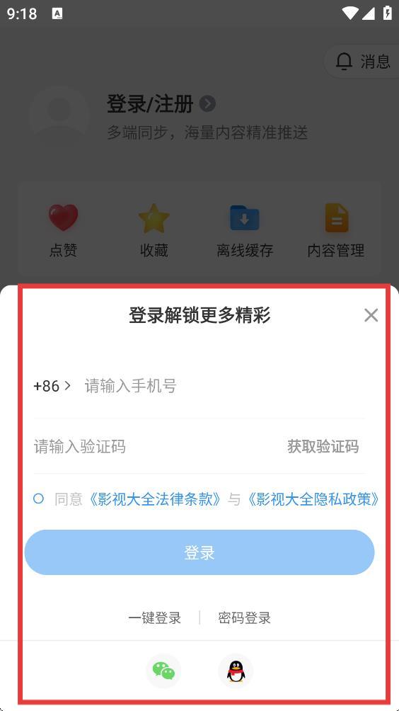 3、根據(jù)所選登錄方式完成驗(yàn)證,即可成功登錄影視大全。