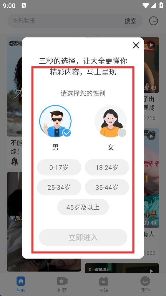 4、若彈出性別和年齡選擇界面,選擇好信息,即可點(diǎn)擊立即進(jìn)入。