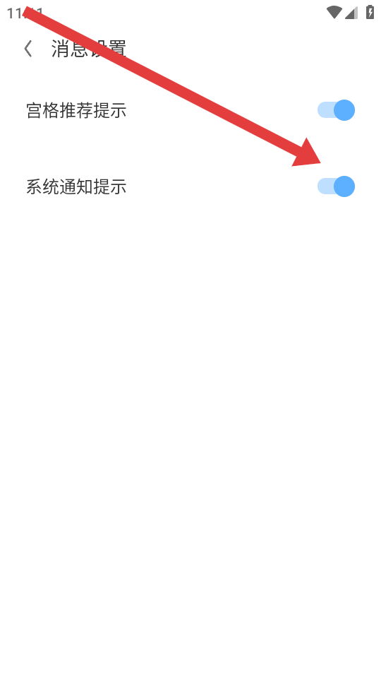 3、在消息設(shè)置的頁面內(nèi),我們需要點擊系統(tǒng)通知提示右側(cè)開關(guān),開啟后會顯示藍(lán)色。