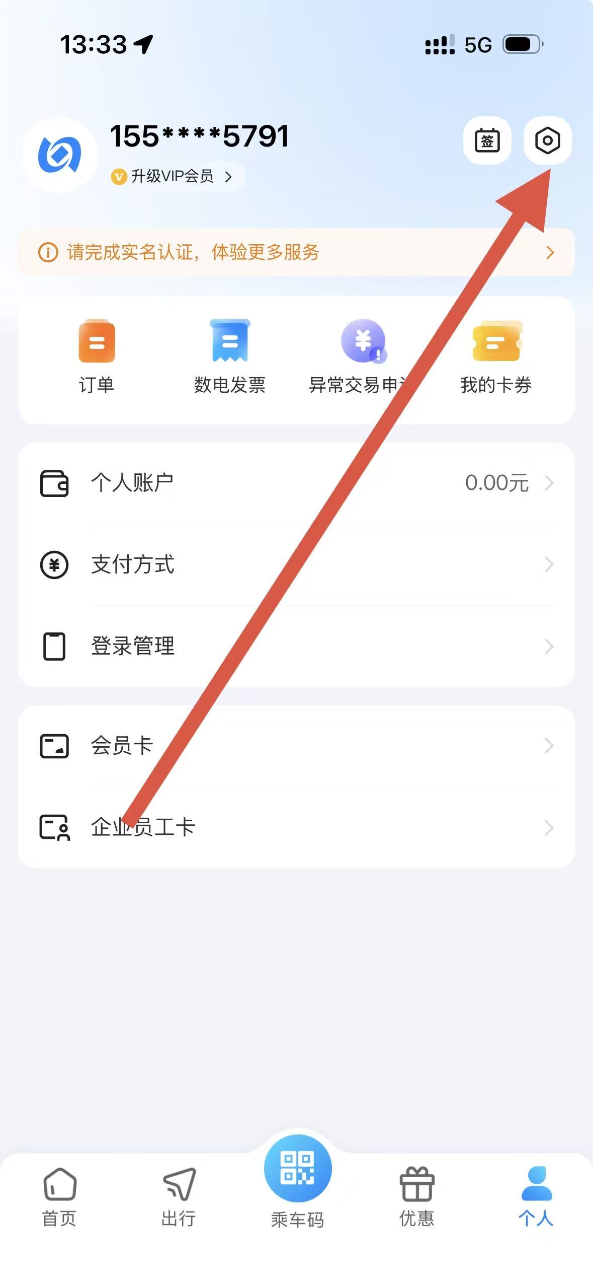 2、在個人界面中,點(diǎn)擊右上角的設(shè)置圖標(biāo),進(jìn)入設(shè)置頁面。