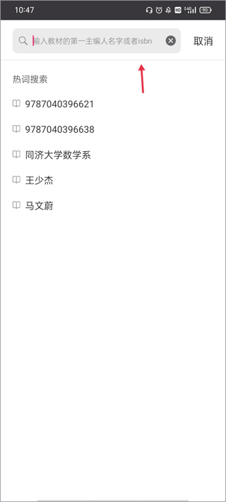 2、在搜索框中輸入教材的第一主編人名字或者ISBN。