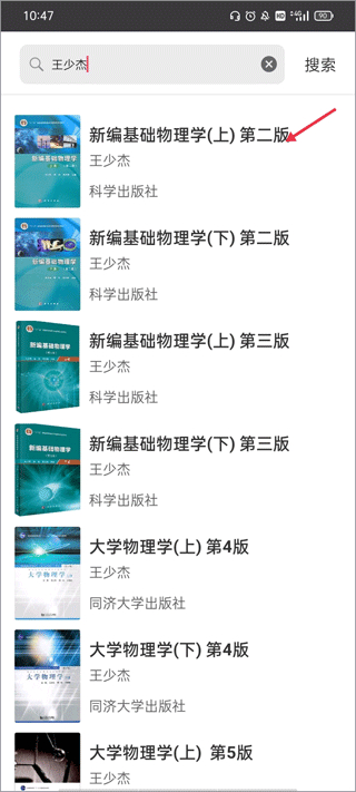 3、在搜索結(jié)果中找到需要的教材,點(diǎn)擊進(jìn)入教材詳情頁(yè)。