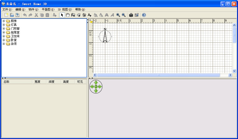 平面圖編輯區(qū) - 顯示繪制的平面圖,可以建立墻壁及家具。