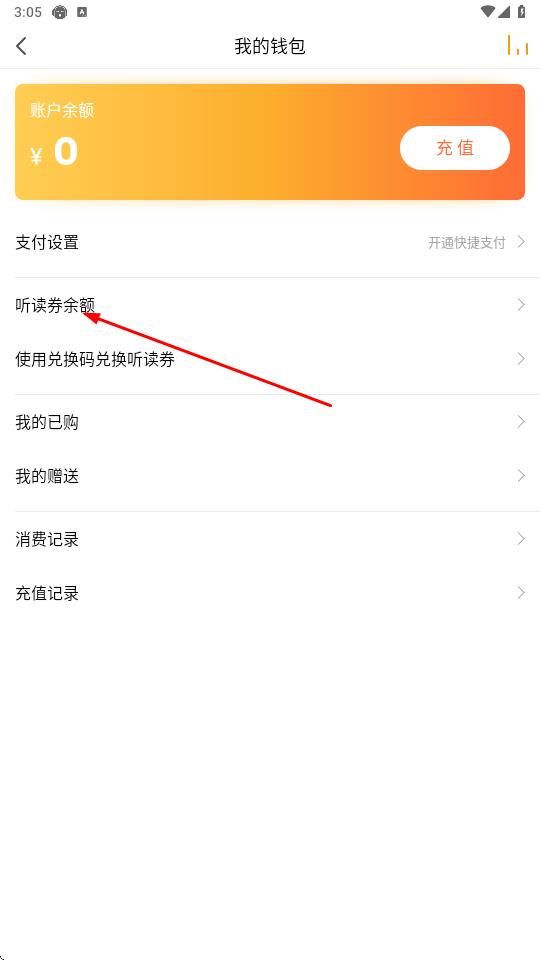 3、在【我的錢包】頁面,查看【消費記錄】和【充值記錄】選項,點擊即可分別查看在懶人聽書的消費及充值等賺錢相關(guān)記錄。