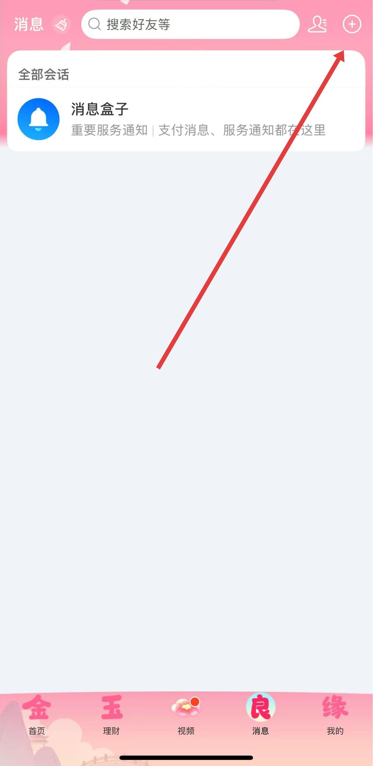 2、在消息頁面的右上角,點擊加號號圖標調出操作菜單。