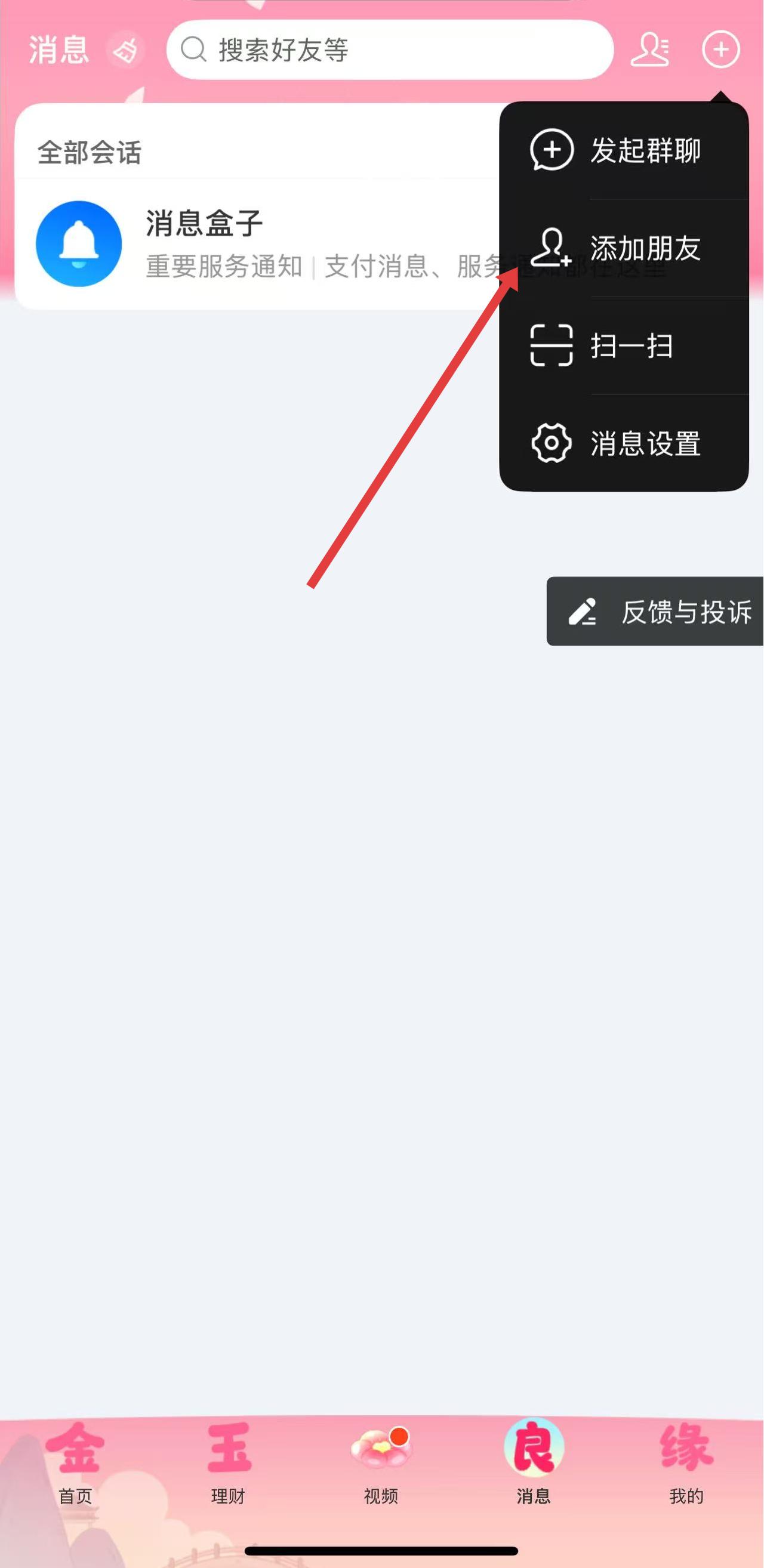 3、在彈出的操作菜單里,點擊添加朋友選項進入添加好友界面。