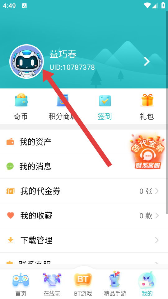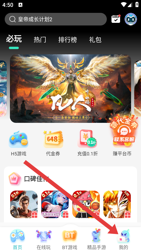 1、在7723游戲盒首頁(yè)底部導(dǎo)航欄,點(diǎn)擊最右側(cè)的我的,進(jìn)入個(gè)人中心頁(yè)面。