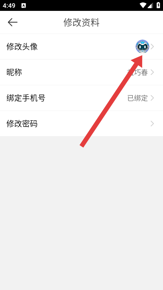 3、在修改資料頁(yè)面,點(diǎn)擊修改頭像選項(xiàng),進(jìn)入頭像圖片選擇界面。