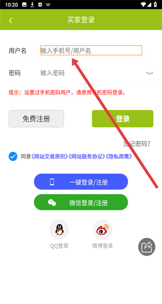 2、主界面點(diǎn)擊“買(mǎi)家”,進(jìn)入買(mǎi)家登錄頁(yè)面。
