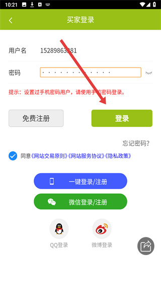 3、在登錄頁(yè)面中可以輸入手機(jī)號(hào)和密碼,準(zhǔn)備完成登錄。