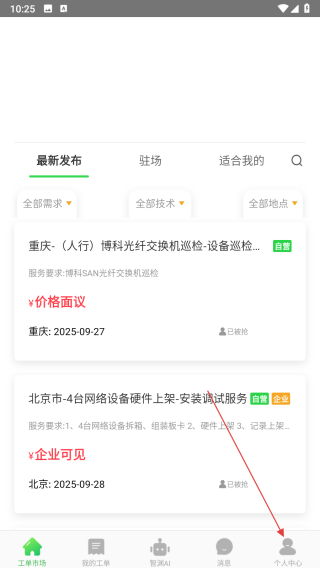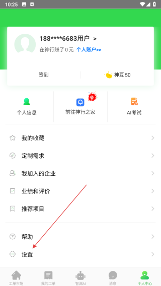 1、打開神行工程師APP,點(diǎn)擊底部導(dǎo)航欄的個人中心,進(jìn)入個人中心頁面。