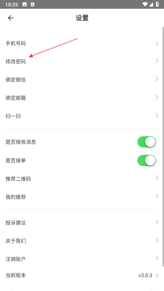 3、進(jìn)入設(shè)置頁面后,點(diǎn)擊修改密碼選項。
