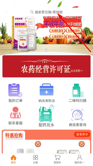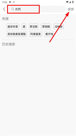 2、在搜索框中輸入想要購(gòu)買的農(nóng)藥名稱,或直接搜索農(nóng)藥,然后點(diǎn)擊右側(cè)的搜索按鈕。