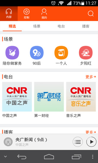 CRI國(guó)際頻道各個(gè)頻率、中國(guó)之聲、各省市廣播、各種網(wǎng)絡(luò)電臺(tái)、音樂(lè)之聲及數(shù)萬(wàn)個(gè)國(guó)外電臺(tái)全球同步直播,世界各地電臺(tái)和國(guó)際知名電臺(tái)無(wú)時(shí)差播放。