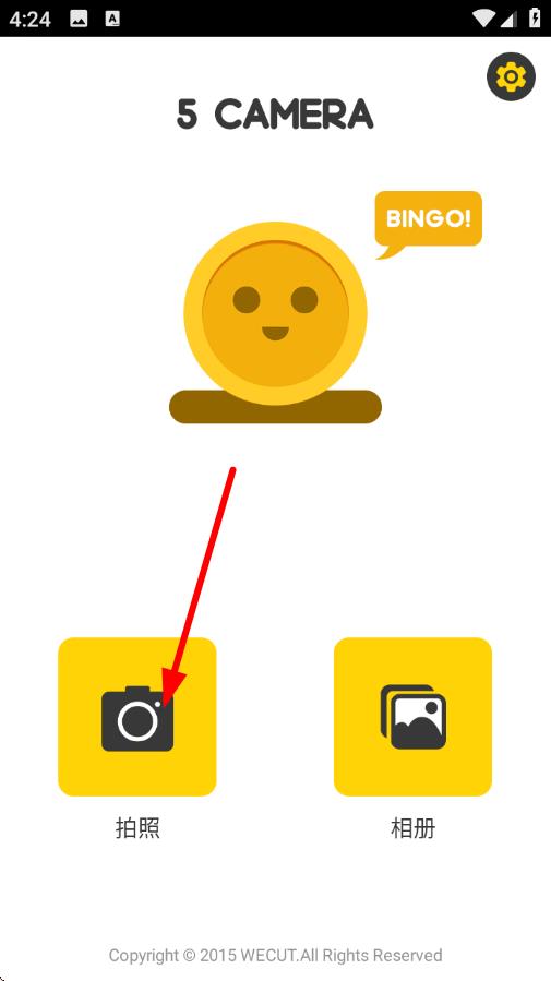 1、打開5毛錢特效相機應(yīng)用,在主界面點擊拍照按鈕,進入拍攝界面。