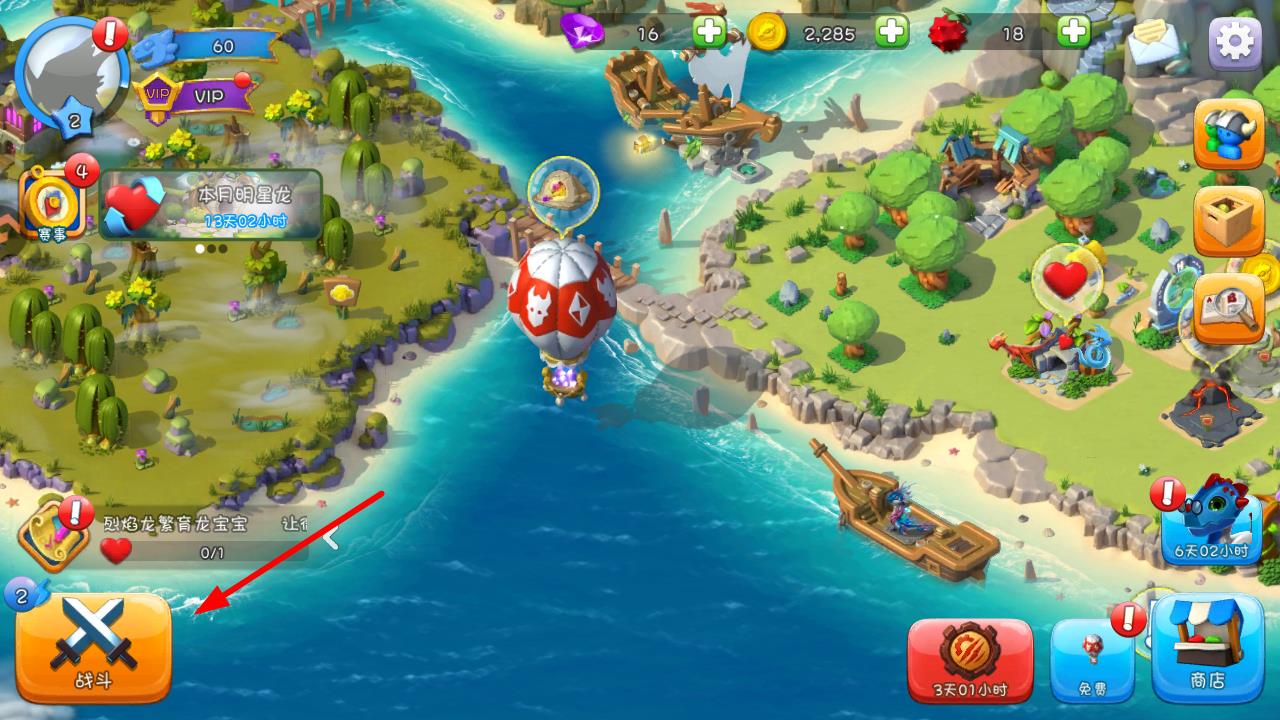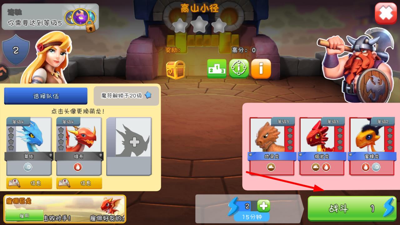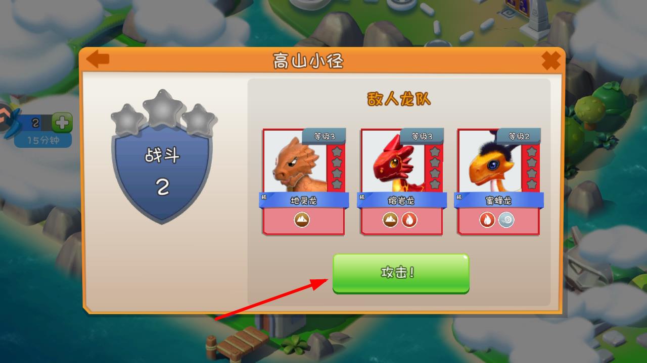 3、界面確認(rèn)好敵人龍隊(duì)信息,無需更換萌龍隊(duì)伍時,直接點(diǎn)擊綠色攻擊按鈕,即可向敵方龍隊(duì)發(fā)起戰(zhàn)斗,爭取勝利獲取星級評價與獎勵。