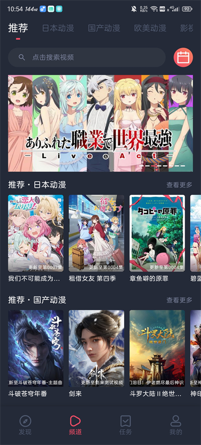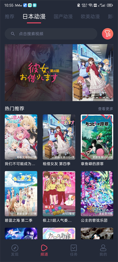 3、點擊首頁上方的分類可以獲取相應(yīng)分類的動漫,分為日本動漫、國產(chǎn)動漫以及歐美動漫等各類資源;