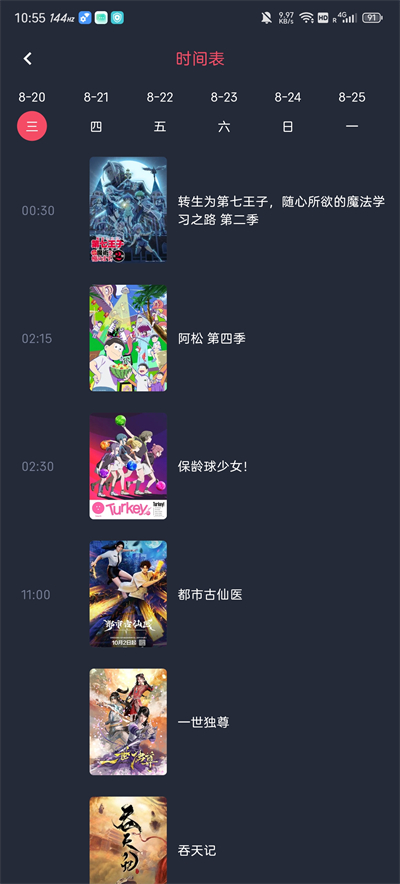 2、點擊后可以在時間表的位置查看每日更新的動漫資源,用戶可以時刻了解動漫的更新進度;