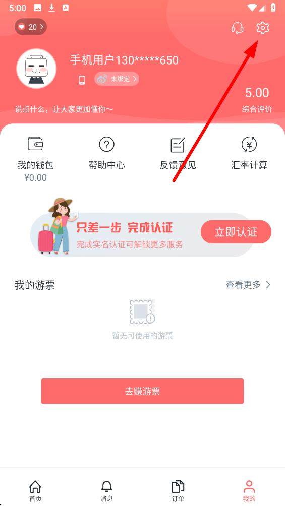 2、在我的頁面中,點(diǎn)擊右上角的設(shè)置圖標(biāo),進(jìn)入設(shè)置界面。