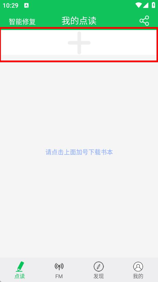 1、進(jìn)入我的點(diǎn)讀頁(yè)面,點(diǎn)擊上方+號(hào)圖標(biāo)準(zhǔn)備下載書(shū)本。