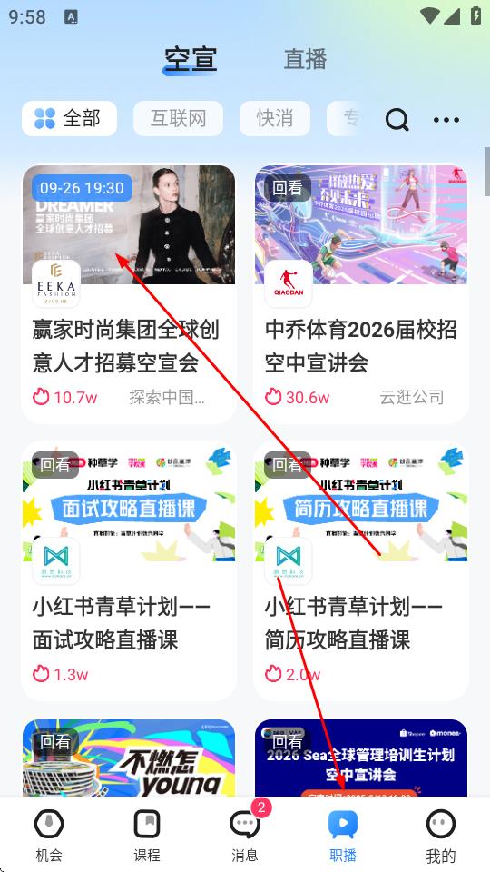 4、職播頁面提供企業(yè)空宣和直播內(nèi)容,求職者可以通過直播實時了解企業(yè)的招聘需求、工作環(huán)境、崗位發(fā)展等。