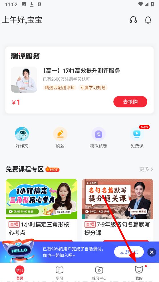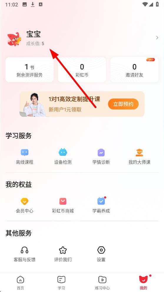1、打開(kāi)掌門(mén)1對(duì)1應(yīng)用,點(diǎn)擊底部導(dǎo)航欄中的我的選項(xiàng),進(jìn)入個(gè)人頁(yè)面。