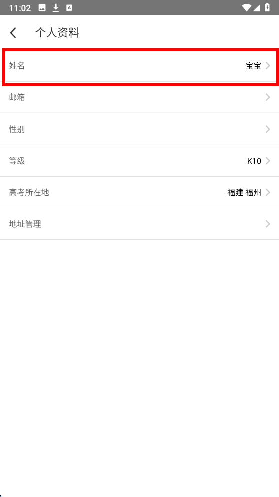 3、在個(gè)人資料頁(yè)面里,找到姓名選項(xiàng)并點(diǎn)擊,進(jìn)入修改姓名界面。