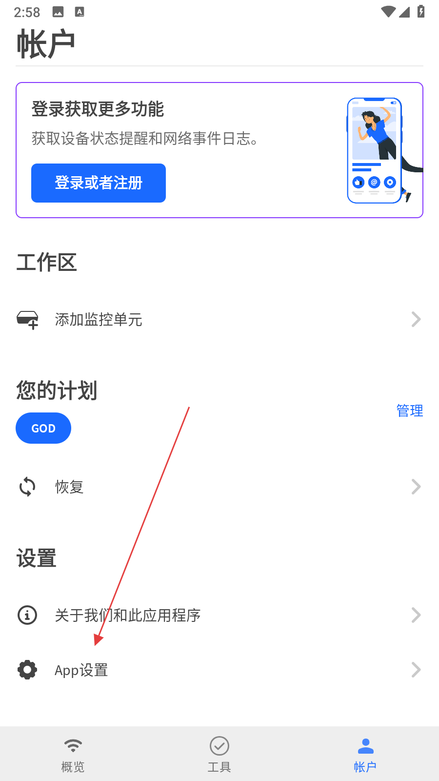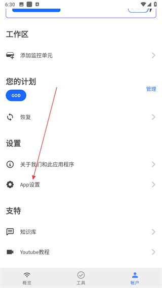 2、在帳戶頁(yè)面,點(diǎn)擊App設(shè)置選項(xiàng),進(jìn)入應(yīng)用設(shè)置界面。