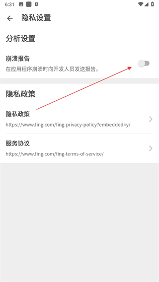 4、在隱私設(shè)置頁(yè)面,可對(duì)崩潰報(bào)告開(kāi)關(guān)進(jìn)行開(kāi)啟關(guān)閉的操作。