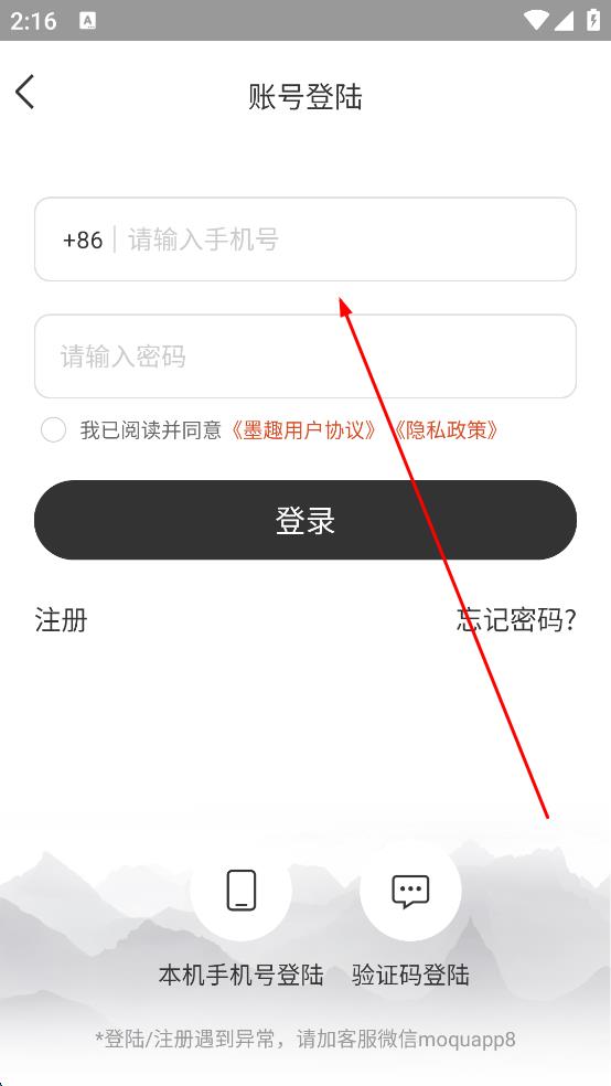 2、在登錄注冊(cè)頁(yè)面,點(diǎn)擊“手機(jī)登錄/注冊(cè)”,進(jìn)入到手機(jī)號(hào)輸入頁(yè)面。