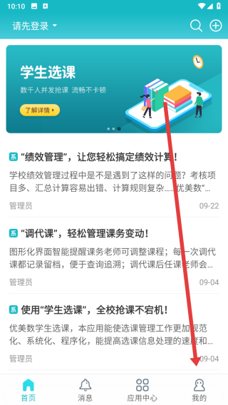 1、在進(jìn)入到江陰智慧云校首頁中后,點(diǎn)擊下方我的按鈕可進(jìn)入到我的主頁。