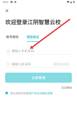 3、在進(jìn)入到登錄頁面后,可以點(diǎn)擊短信驗證按鈕,切換登錄方式。