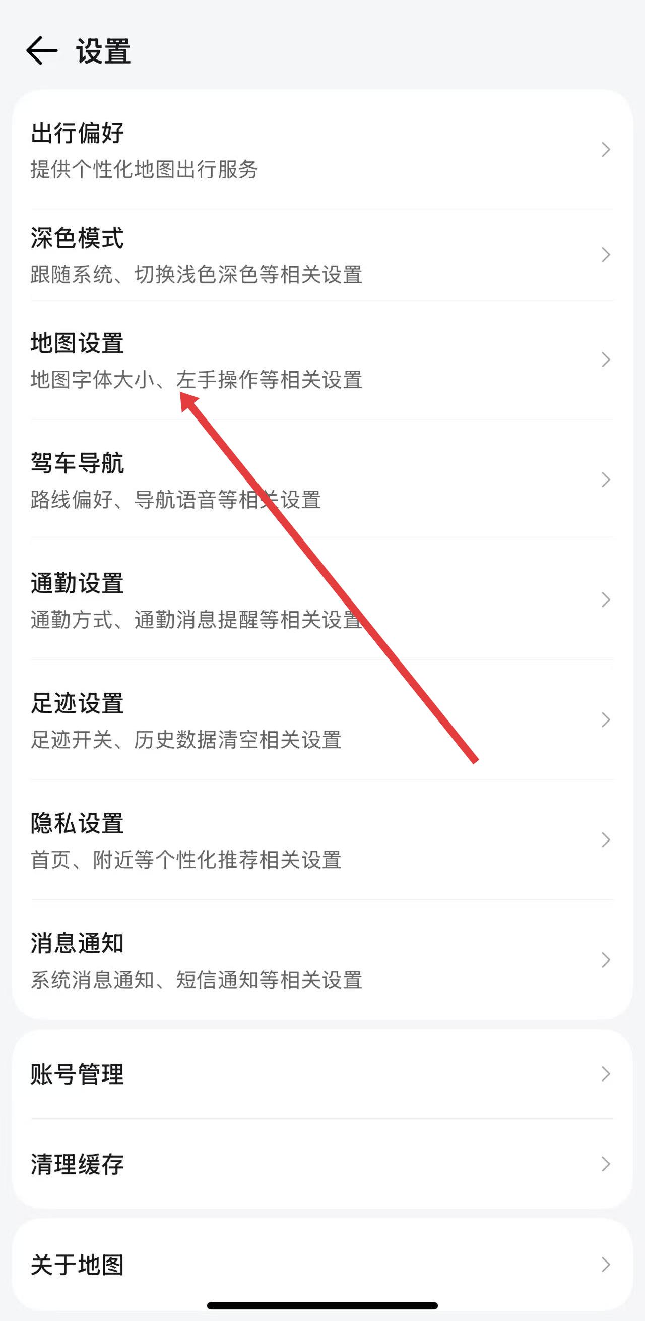2、在設置頁面中,找到并點擊地圖設置選項。