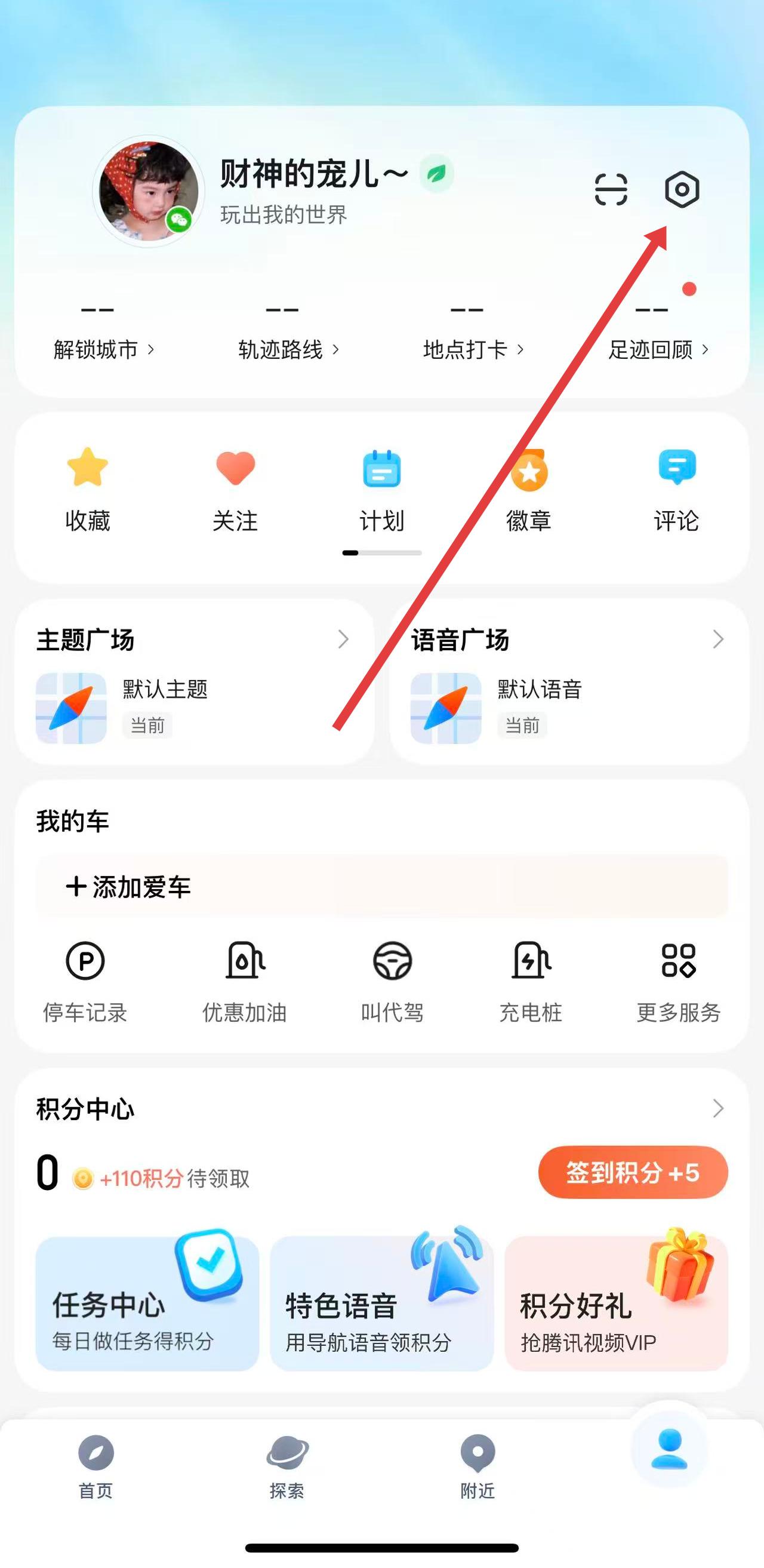 1、打開騰訊地圖APP,進入個人頁面,點擊右上角的設置圖標。