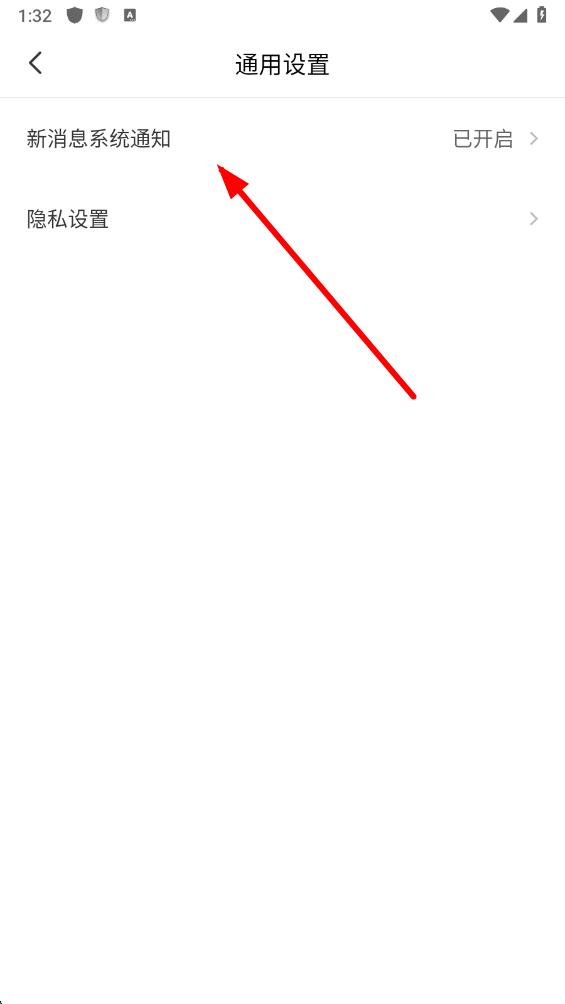 4、在通用設(shè)置界面里,點擊新消息系統(tǒng)通知選項。