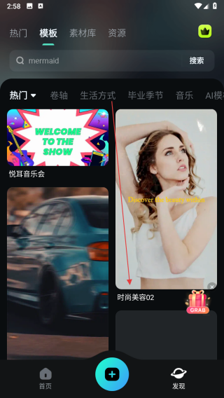 1、打開FilmoraGo應(yīng)用,進(jìn)入模板頁面,選擇一款想要使用的模板。