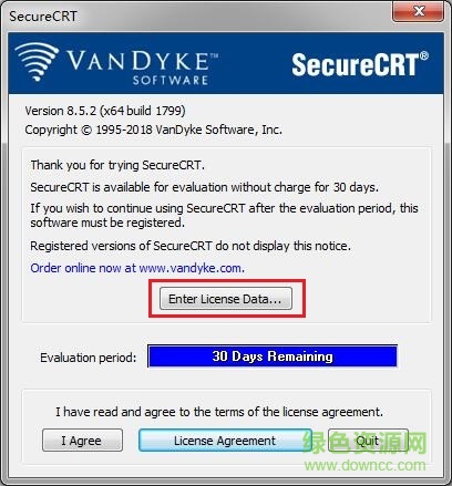 5.然后運行SecureCRT,會提示要注冊,點“ok”,接著選“Enter license Data”
