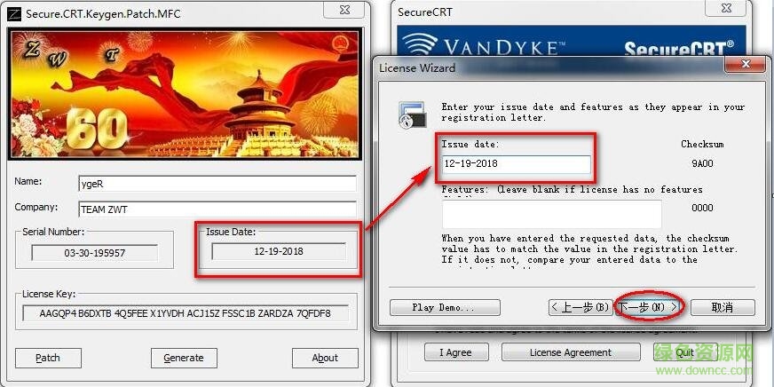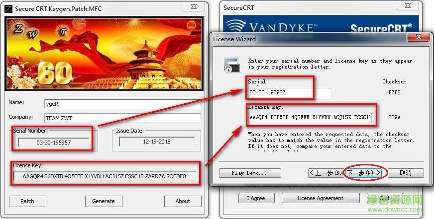 9.再將注冊機中的Serialmumber和License key復(fù)制到軟件對應(yīng)框中去,繼續(xù)“下一步”