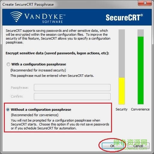 11.勾選“without a configuration passphrase”,點擊“ok”就可以了