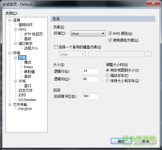 終端選擇“Linux”, 勾選“ANSI顏色” 和 “使用顏色方案”,終端顏色配置請見下面后續(xù)...