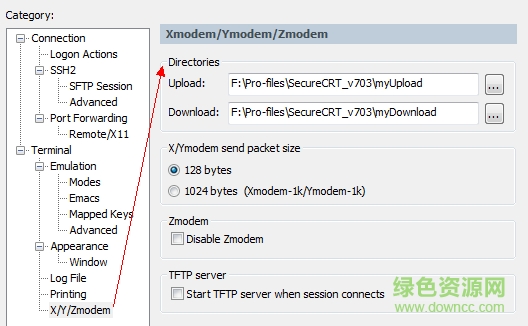 options->session options ->Terminal->Xmodem/Zmodem 下,在右欄Directories設(shè)置上傳和下載的目錄: