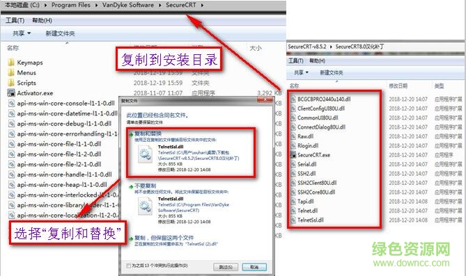 1.將“SecureCRT8.0漢化補丁”里面的所有文件復(fù)制到SecureCRT安裝目錄,會提示覆蓋,全部選擇“是”