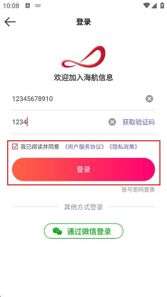4、勾選我已閱讀并同意用戶服務協(xié)議,隱私政策,點擊“登錄”按鈕完成登錄。