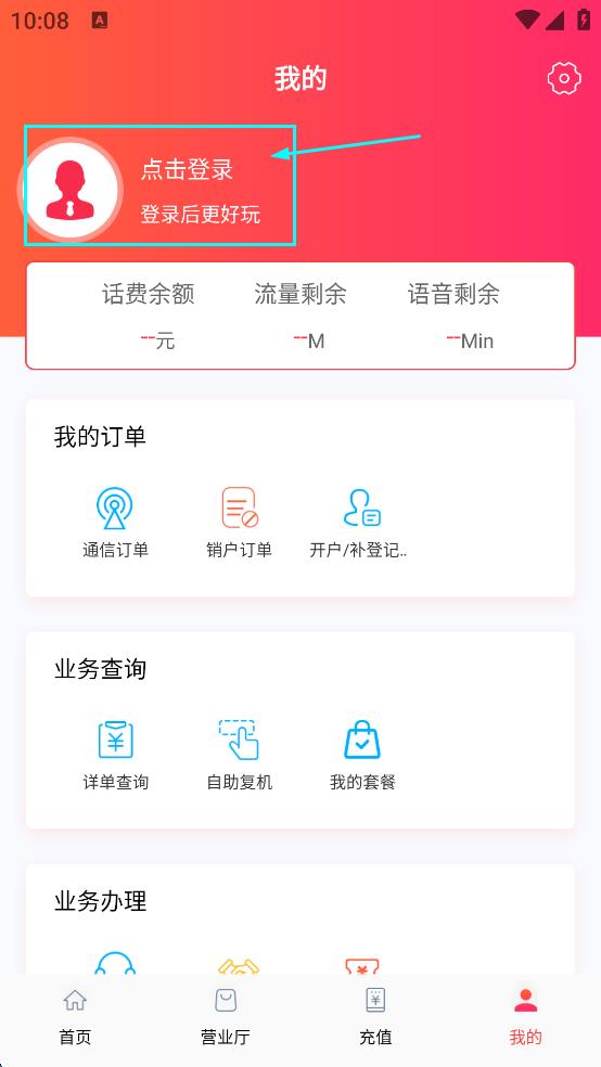 2、在個人頁面,點擊“點擊登錄”區(qū)域,進入登錄界面。
