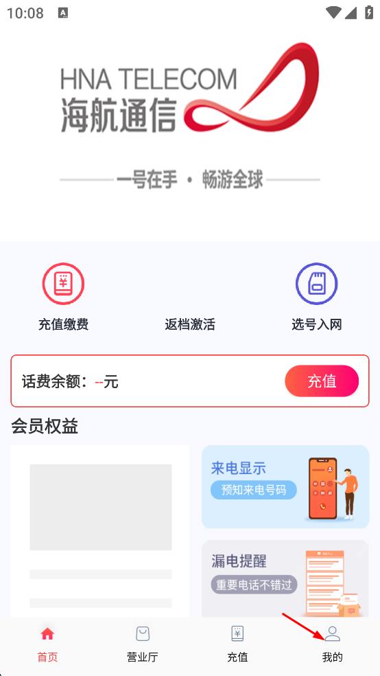 1、打開海航通信APP,點擊頁面底部“我的”選項,進入個人頁面。