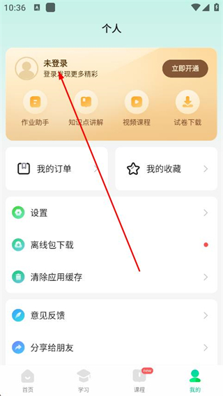 2、在個(gè)人頁面中,找到并點(diǎn)擊上方的未登錄區(qū)域。