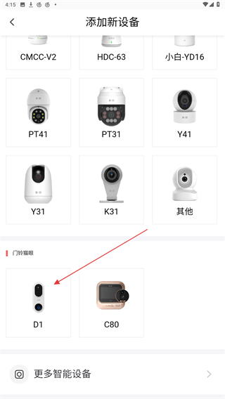 2、進入添加設(shè)備的頁面內(nèi),向下拉動點擊D1的設(shè)備。
