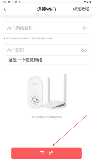 4、進入連接Wi-Fi的界面內(nèi),輸入名稱、密碼再點擊下一步。