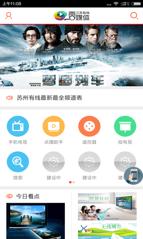 5.配合蘇州有線高清互動機頂盒,用戶利用手機/pad可以對電視屏進行跨屏遙控、文字輸入、語音換臺、智能推送以及本地投射